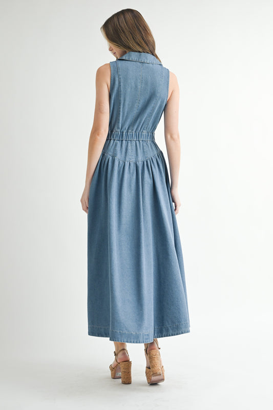 Jacket Collar Denim Midi Dress