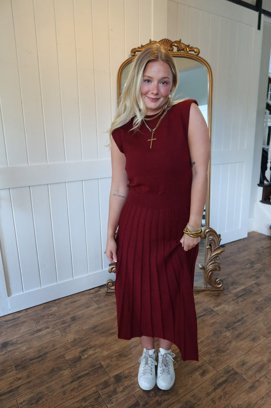Maroon Knit Midi Dress