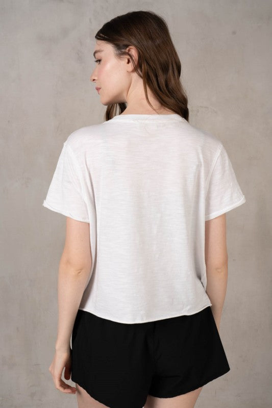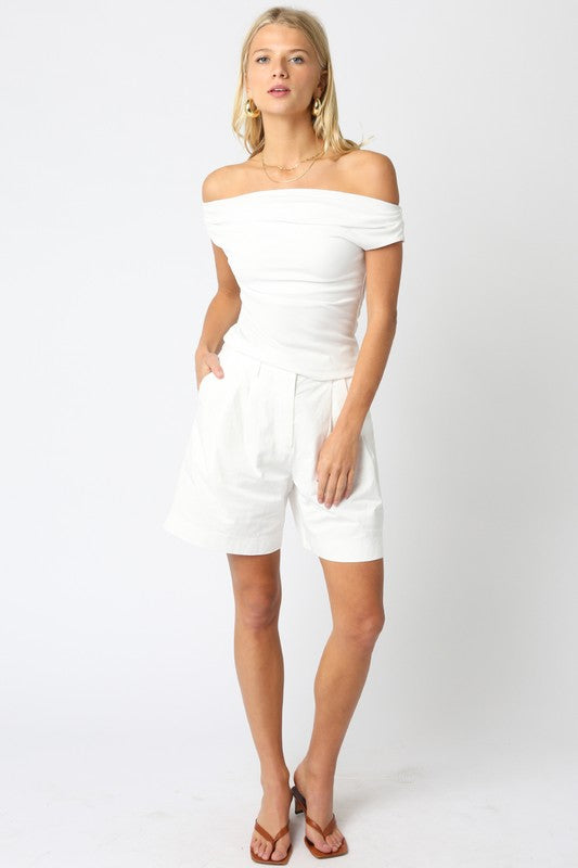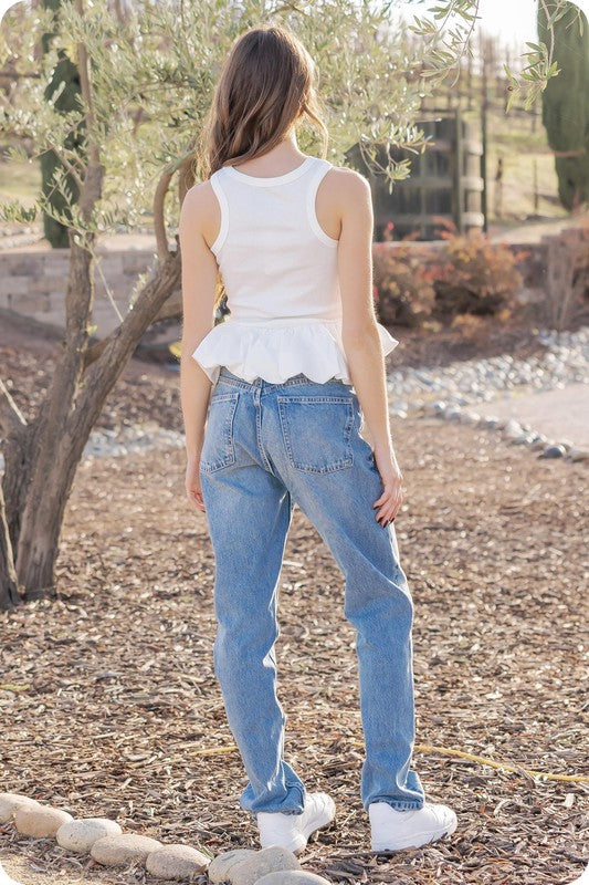 White Ribbed Knit Poplin Bubble Hem Sleeveless Top