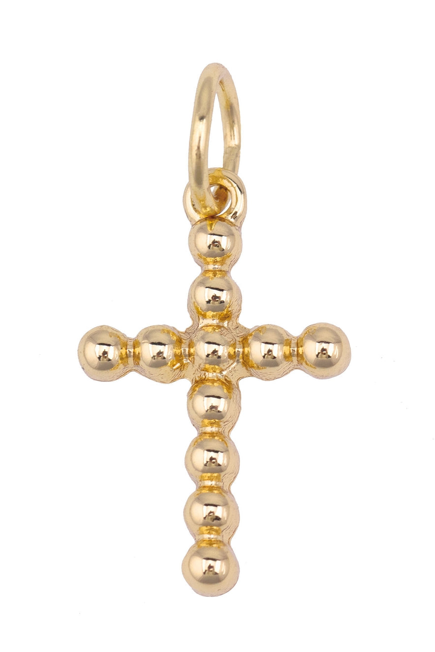 Delicate and divine, the Beaded Cross Charm in Shiny Gold features subtle beading for a touch of texture and timeless faith. A meaningful addition to any charm bracelet or necklace. DETAILS: 18K Triple Gold Plated 1"L x .625"W